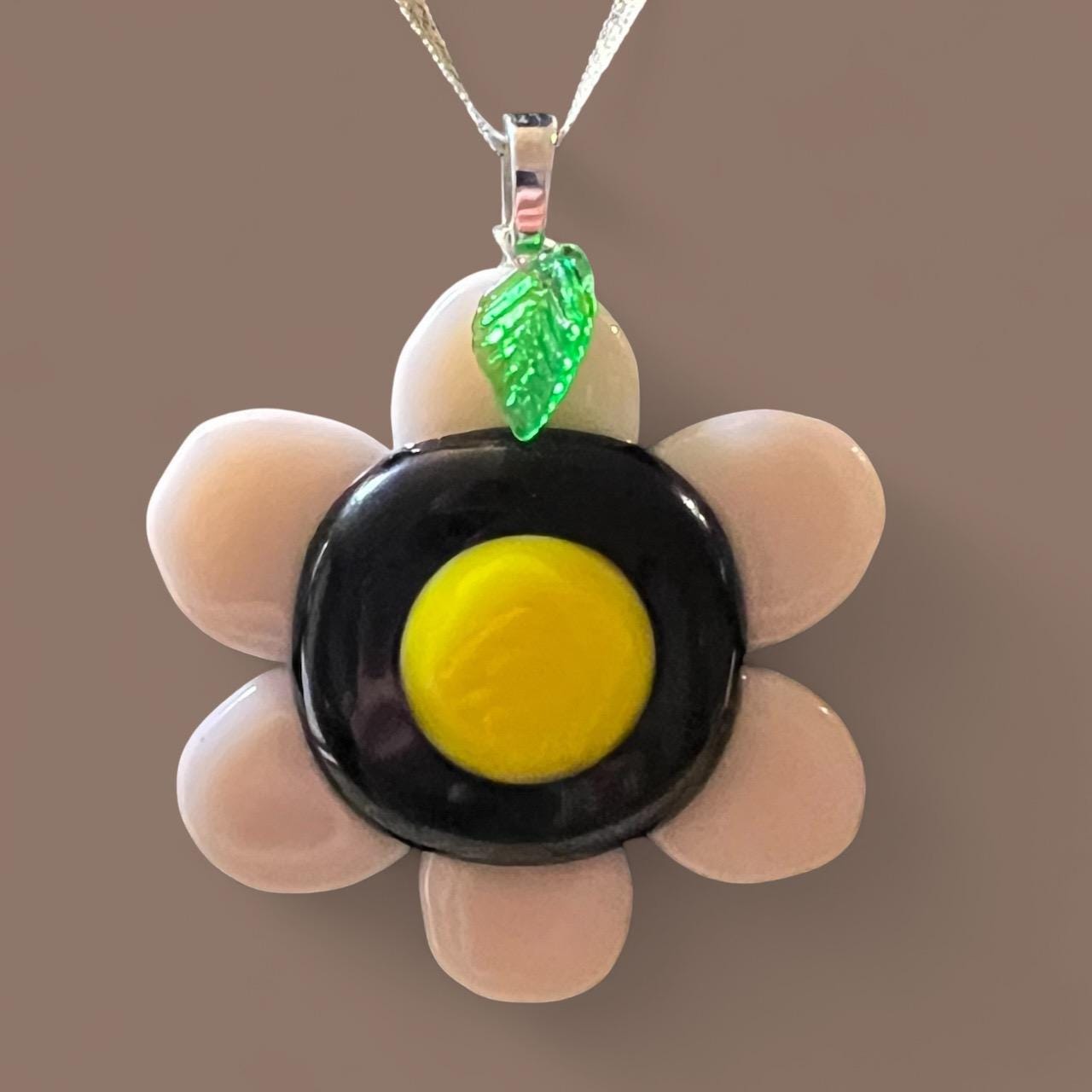 Black and White Flower Pendant for Women & Girls | Glass Flower | Flower Child | Boho Beauty | Gift for Her | Nature Lover | Beach Necklace