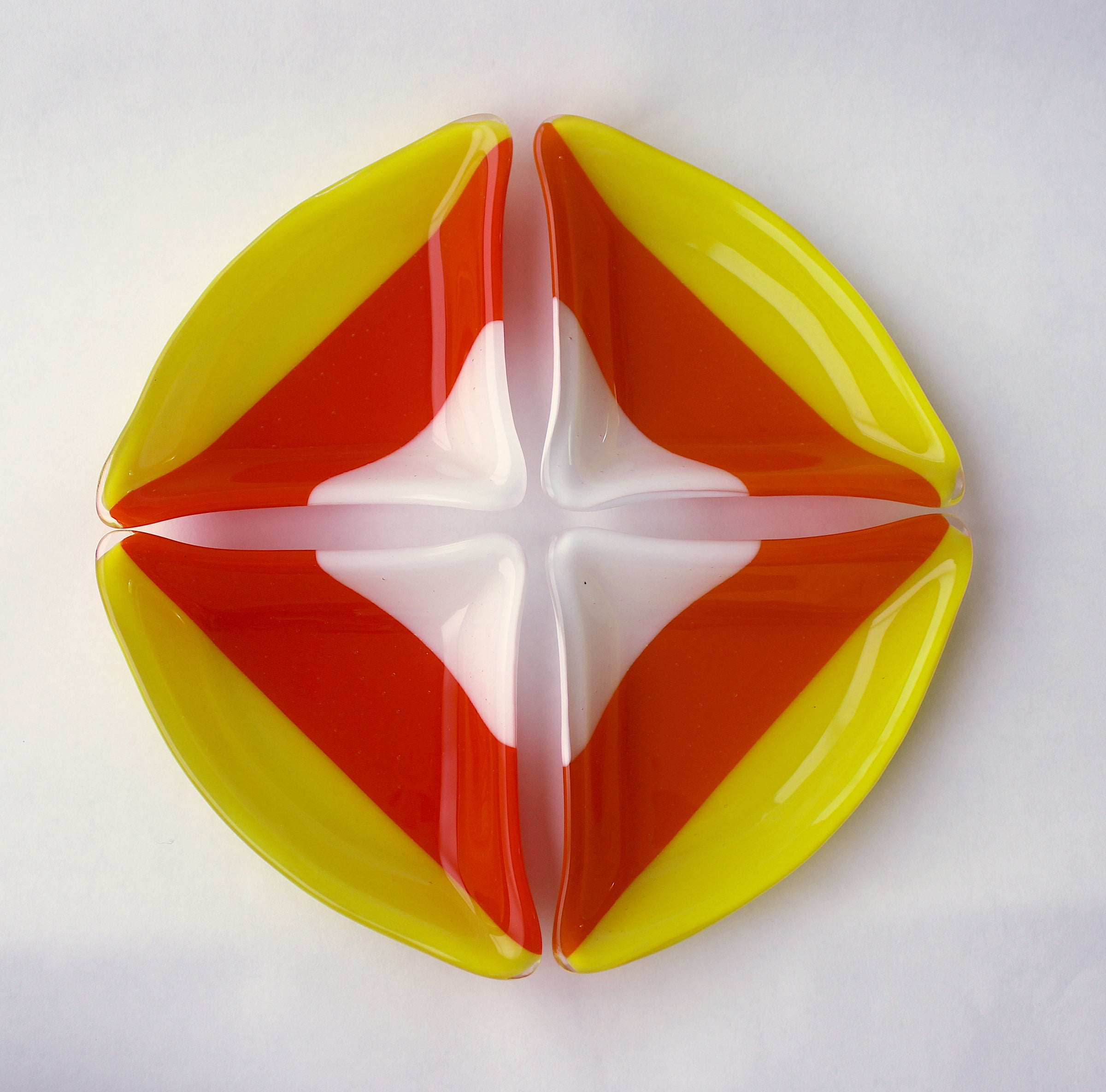 Candy Corn Quarters fused glass 4 dish set
