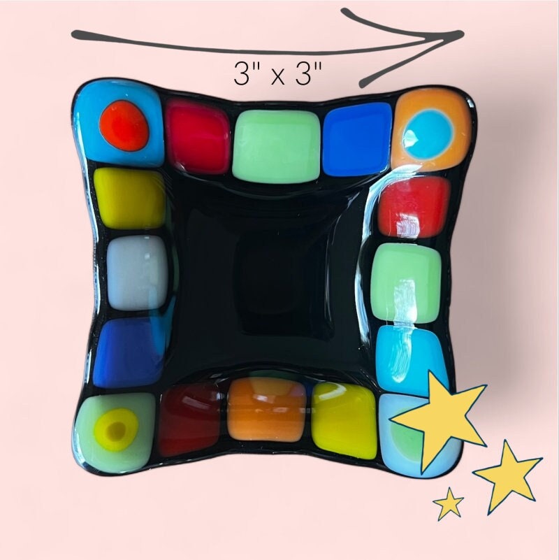 Colorful Glass 3×3 Dish | Jewelry Dish | Gift | Fused Art Glass | Decorative Home Decor | Abstract | Anniversary | Trinket Dish | Handmade