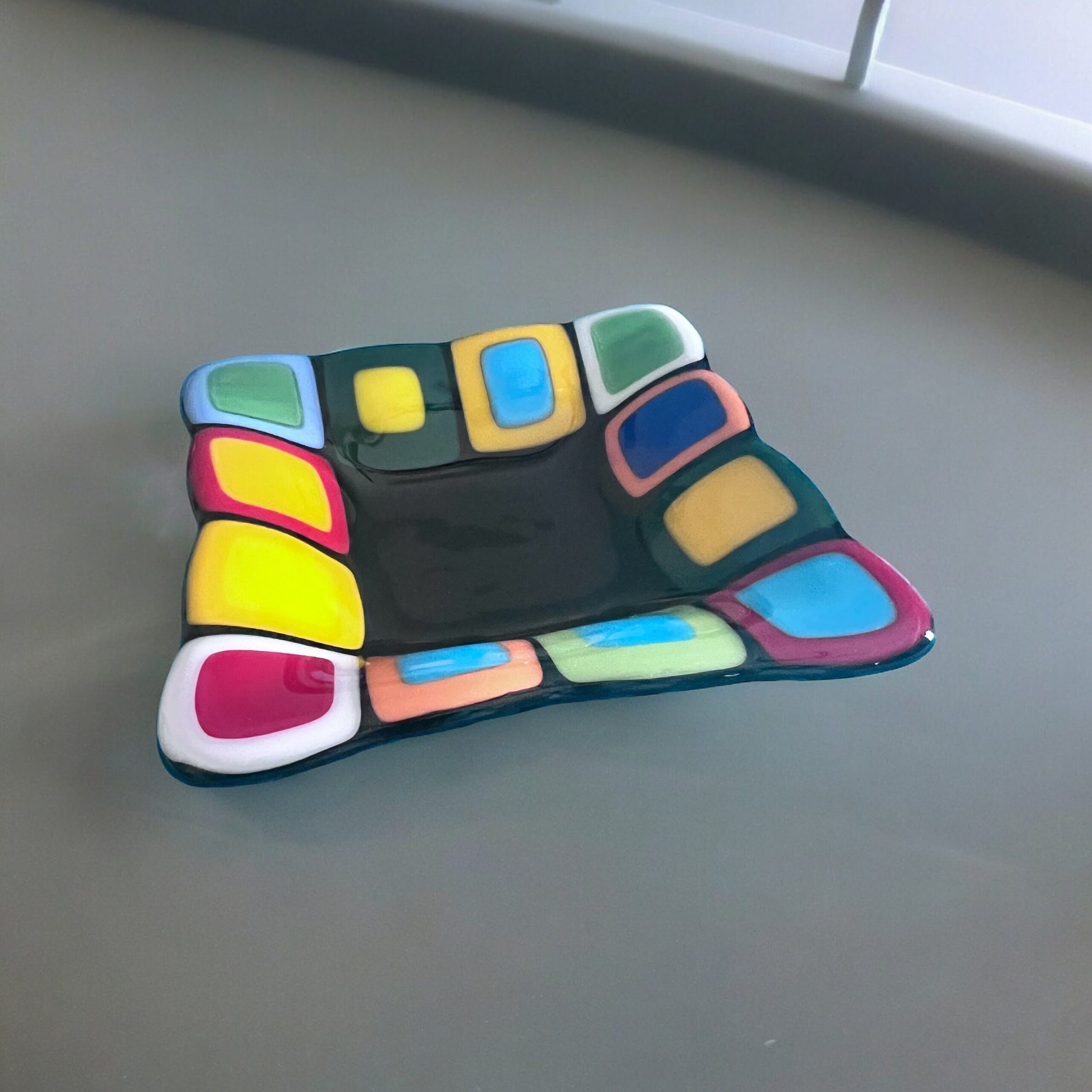 Colorful Glass Dish | 5 x 5 Dish | Gift | Fused Art Glass | Decorative Home Decor | Abstract | Anniversary Gift | Foodie Gift | Kitchenware