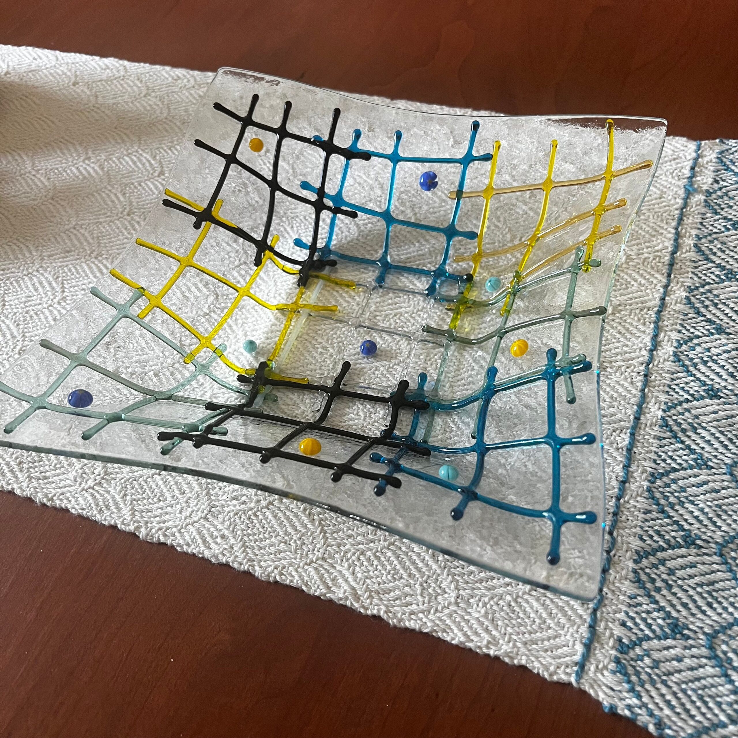 Colorful Glass Dish | 9 x 9 Dish | Gift | Fused Art Glass | Decorative Home Decor | Abstract | Anniversary Gift | Foodie Gift | Kitchenware