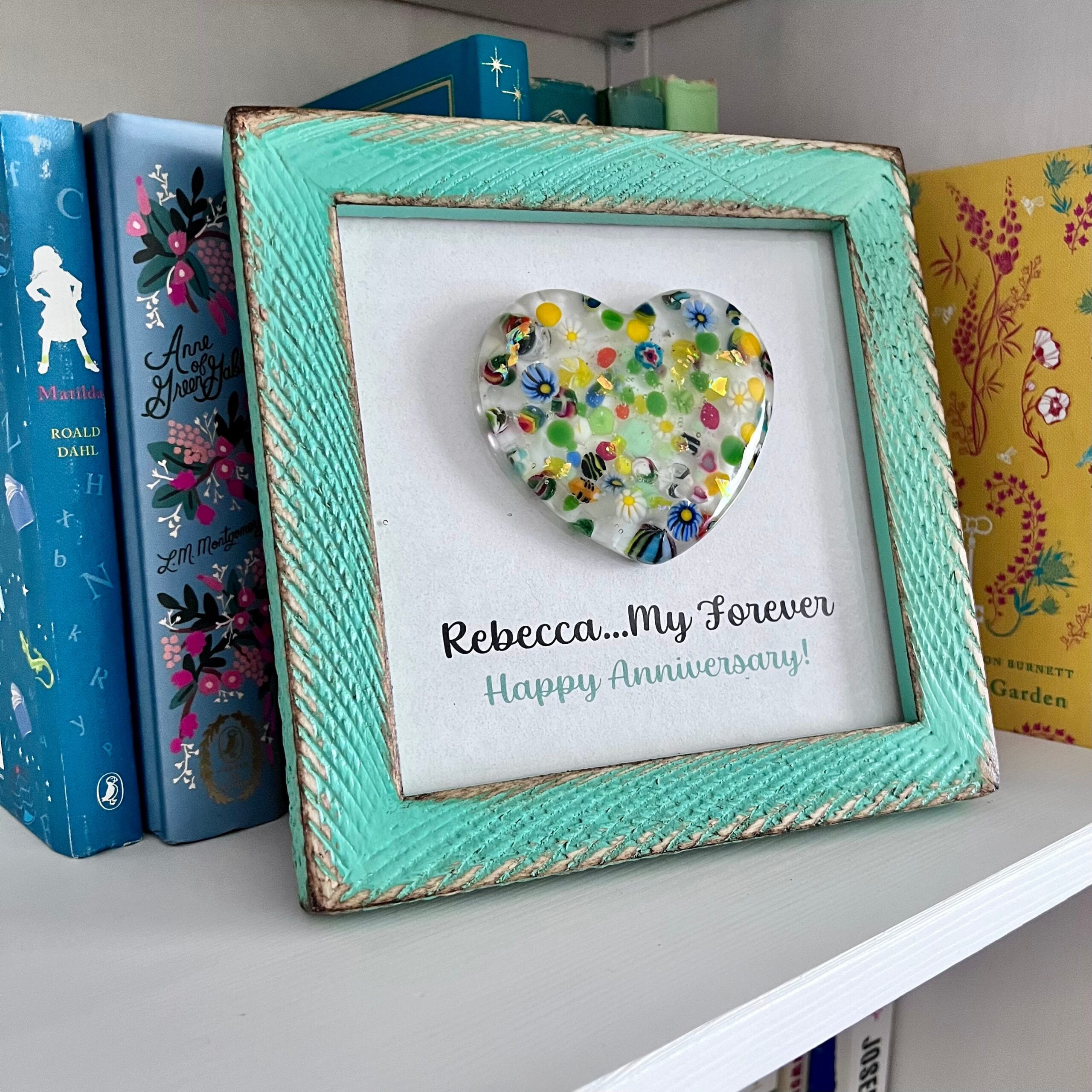 Custom Message Framed Wall Art | Personalized ANNIVERSARY | Fused Glass Heart | Personalized Message | Keepsake Gift | Gift for her | Love