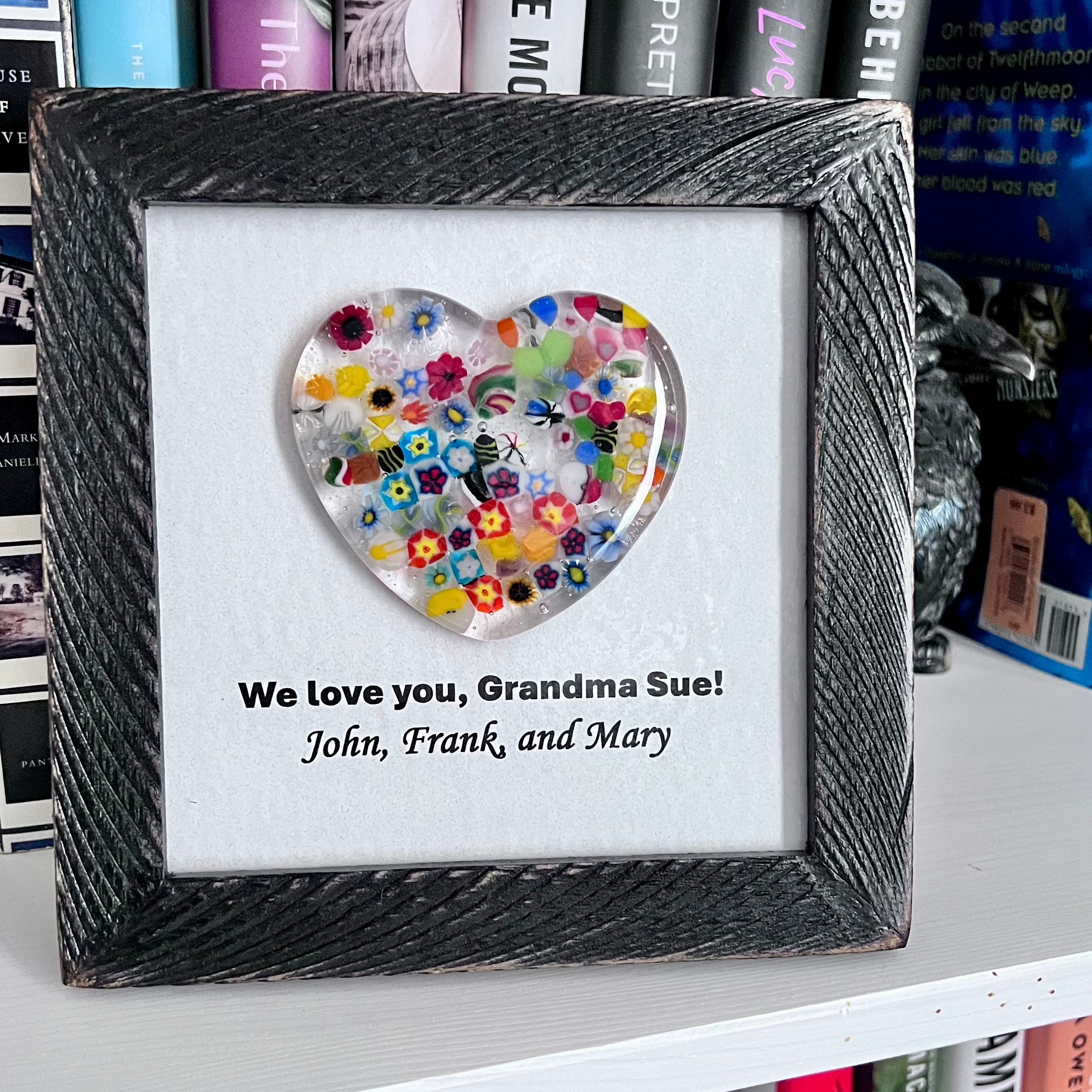 Custom Message Framed Wall Art | Personalized Grandma Gift | Fused Glass Heart | Personalized Message | Gift for Mom | Heart Gift | Family