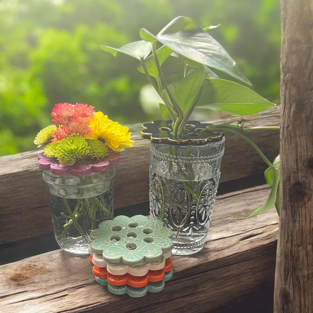 Cutting Garden Vase Top | Flower Arranging | Propagation | Jar Flower Frog | Best Friend | Handmade | Colorful Ceramic Flower | Gift for Her