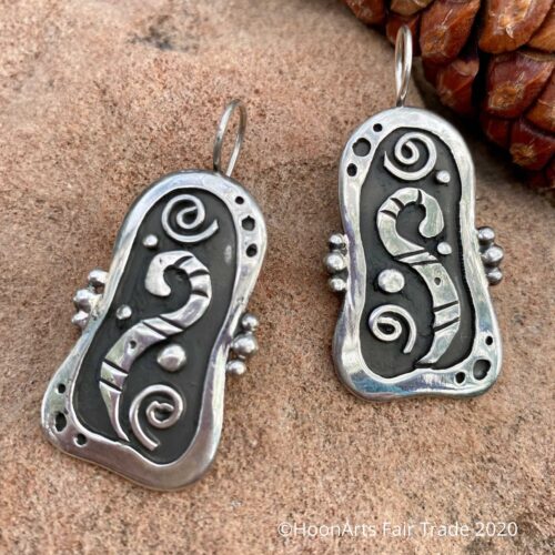 Large Silver Rectangular Swirl Earrings from Kyrgyzstan -“Farzana”
