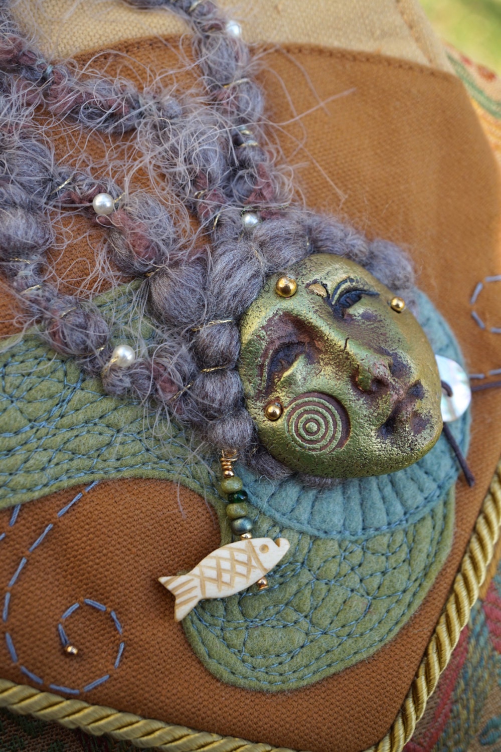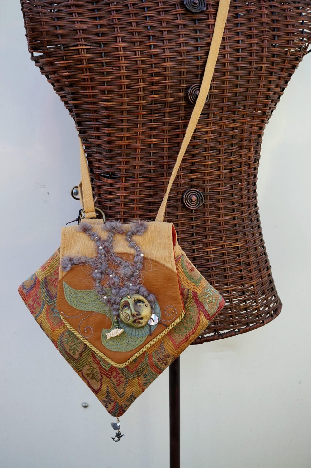 Mermaid Maiden Of The Seas One Of A Kind Spirit Bag Mixed Media Textile Art Wearable