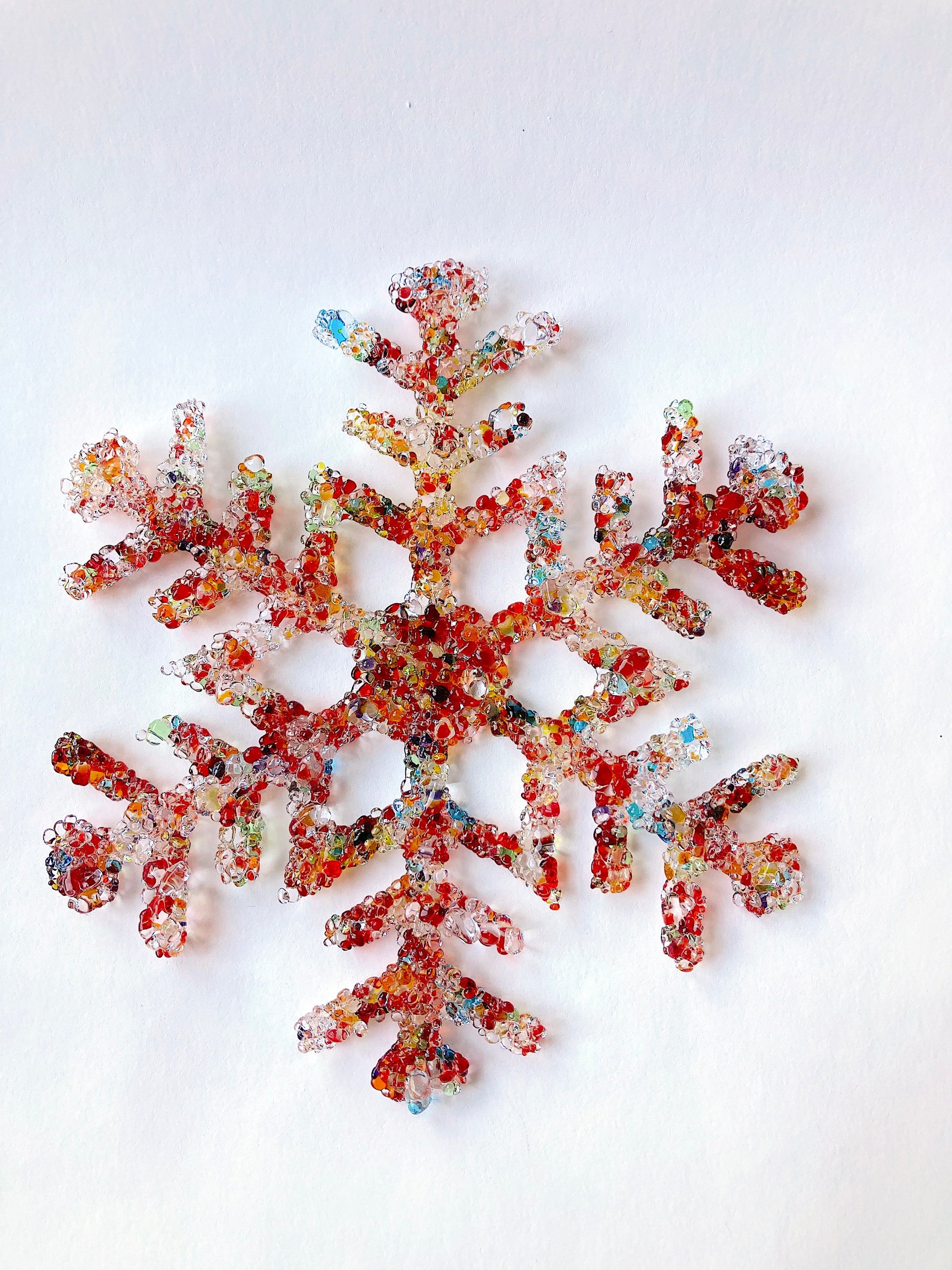 Simply Lovely Snowflakes fused glass multi-colored red