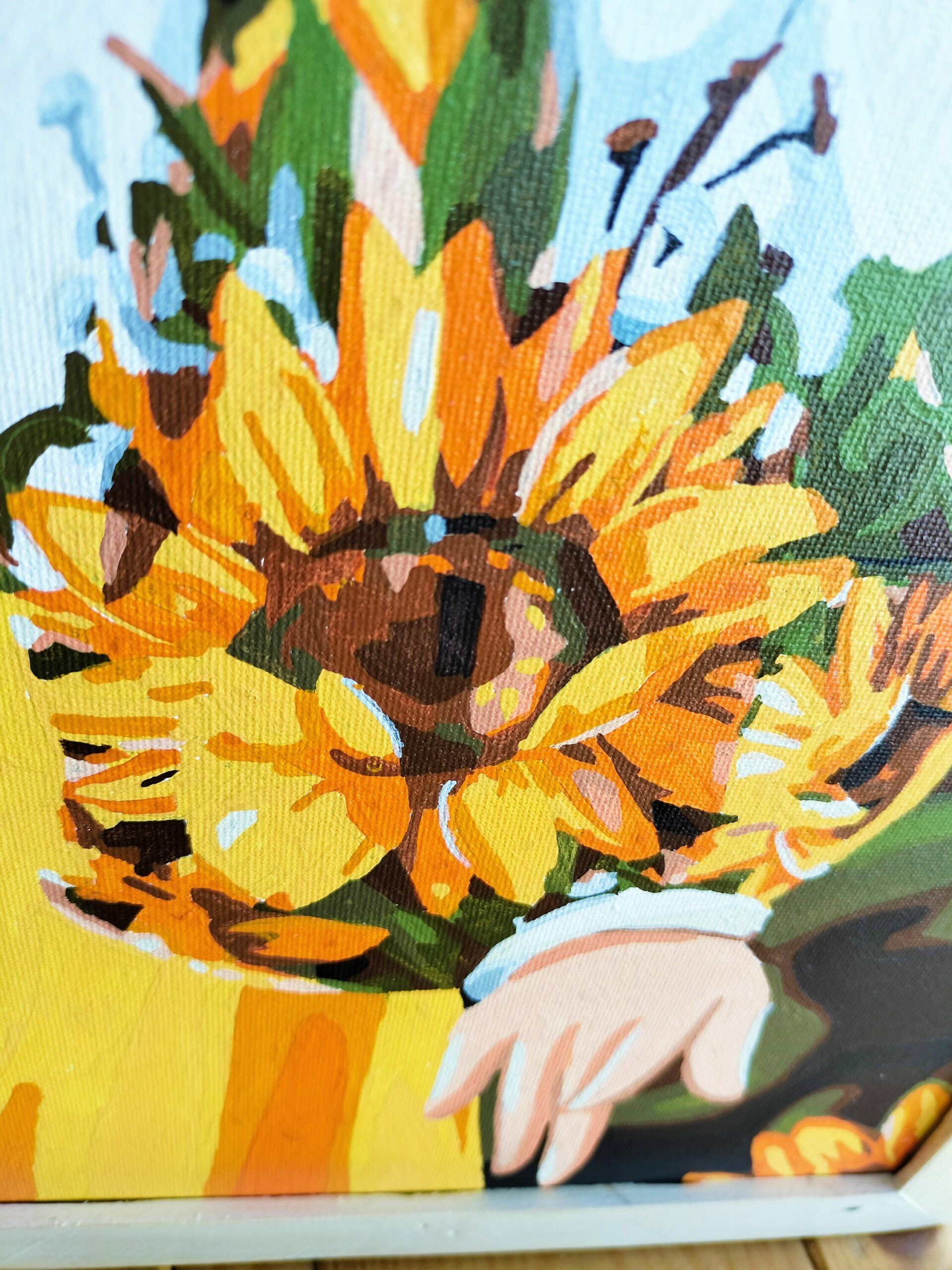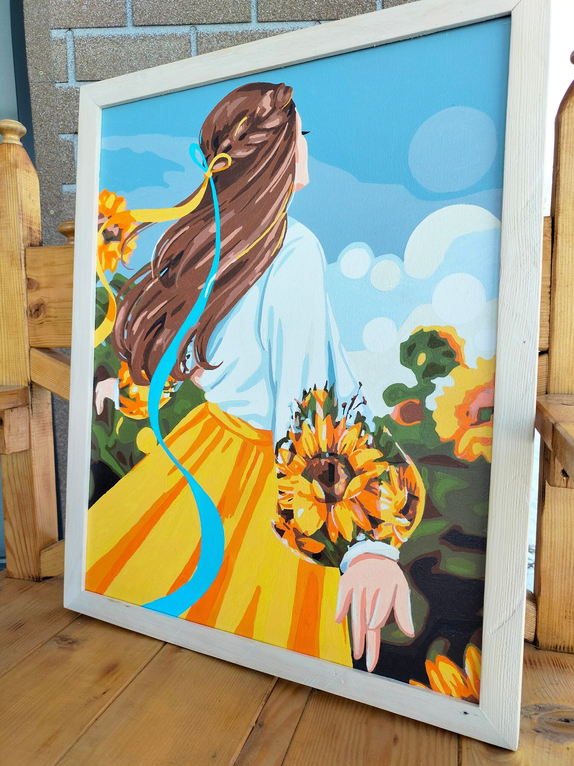 Stand with Ukraine, acrylic painting – girl in sunflower blouse