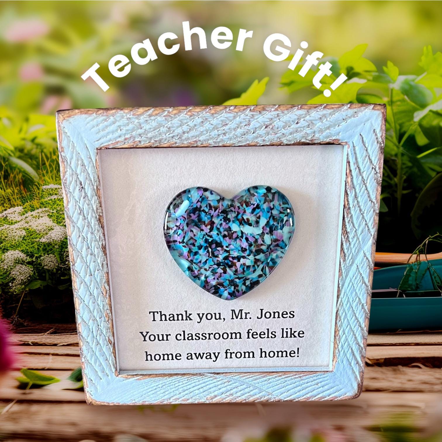 Teacher’s Gift | Custom Message Framed Wall Art | Coach’s Gift | Fused Glass Heart | Personalized Message | Wall Accents | School | Daycare