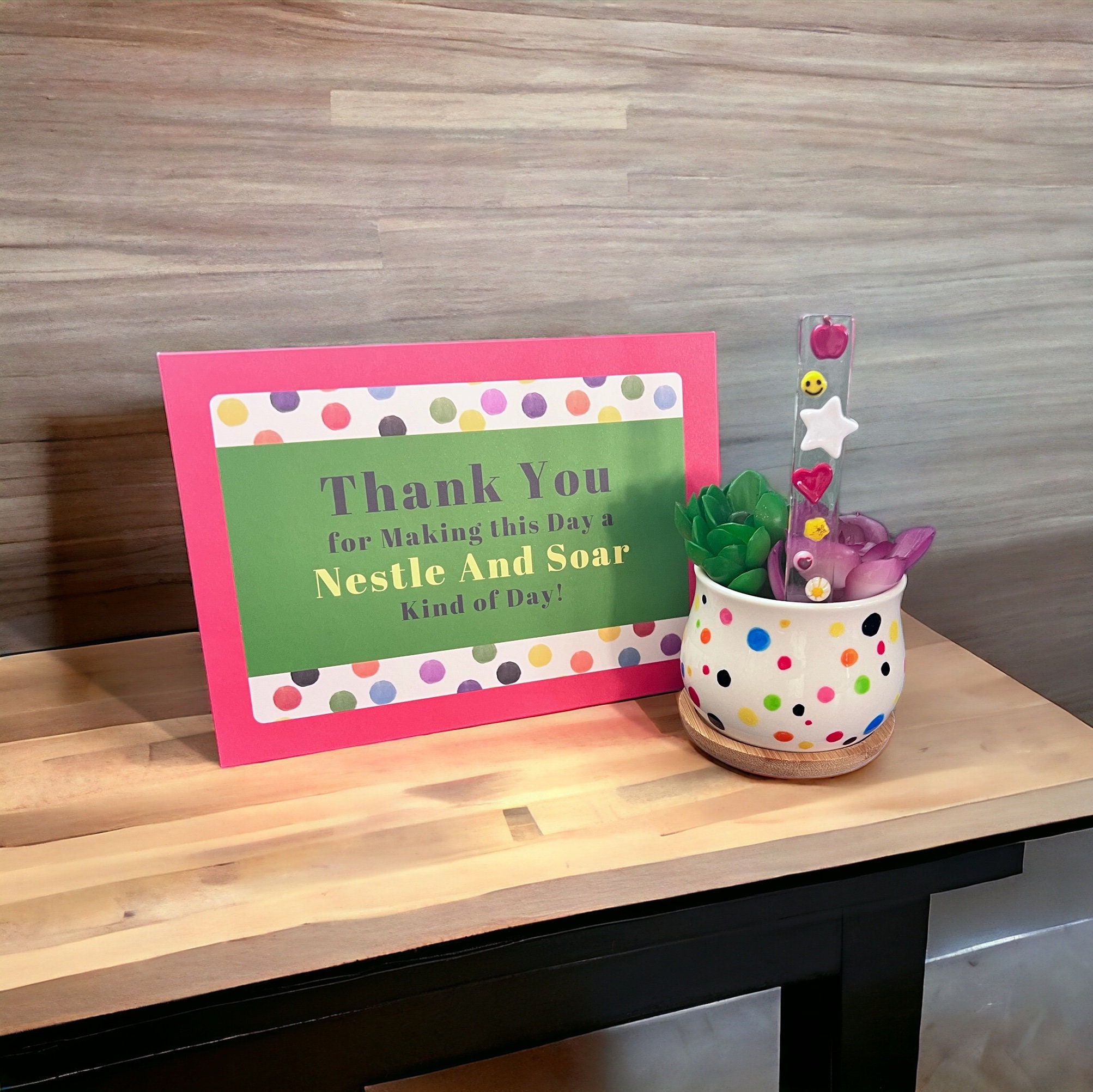Teachers Gift | Succulent Pot | Gift for Teacher | Mini Polka Dot Plant Pot | Hand Painted | Glass Plant Stake | Personalized | Daycare Gift