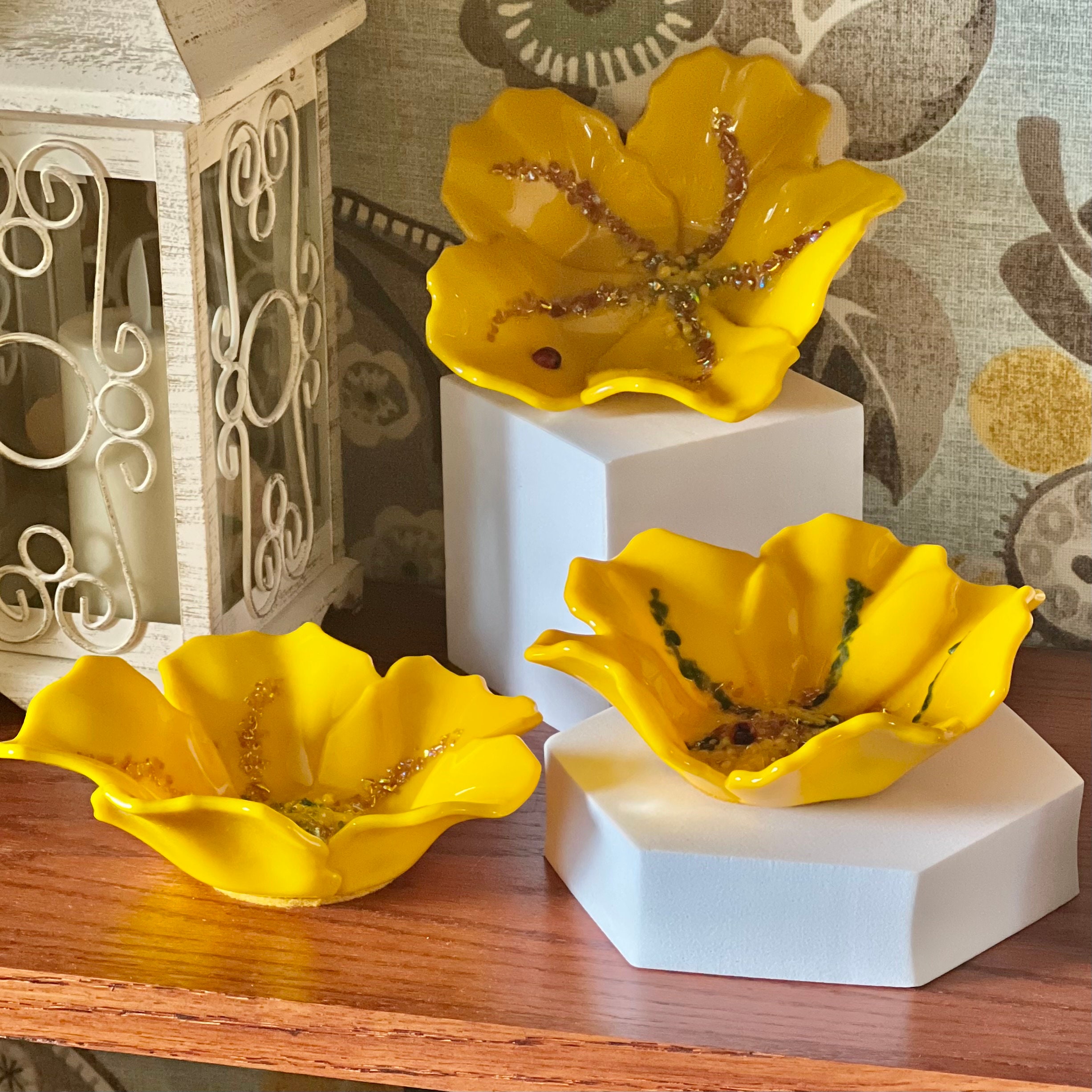 • Sturdy fused glass featuring a 5-petal flower